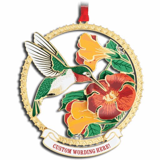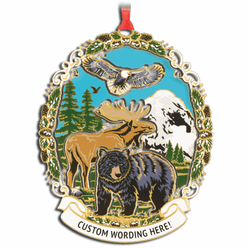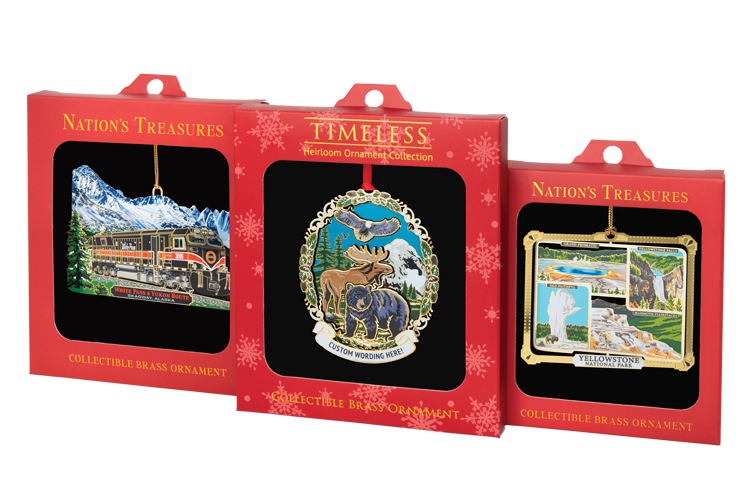 This beautifully designed heirloom ornament collection features a wide range of designs celebrating wildlife, nature and Christmas themes that capture vacation memories and holiday traditions. All are customizable with name drop banners to create meaningful keepsakes at a low minimum of 12 pieces per style and 48 pieces total.